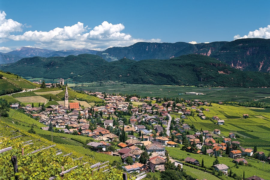 Nedanför de höga bergssidorna klättrar små medeltida städer omgivna av branta vinodlingar som blickar ut över sjön Kaltern och dignande fruktgårdar. Fortfarande är det tyska kulturarvet i området starkt. Tyska är det första språket och även vinerna följer tysk tradition.