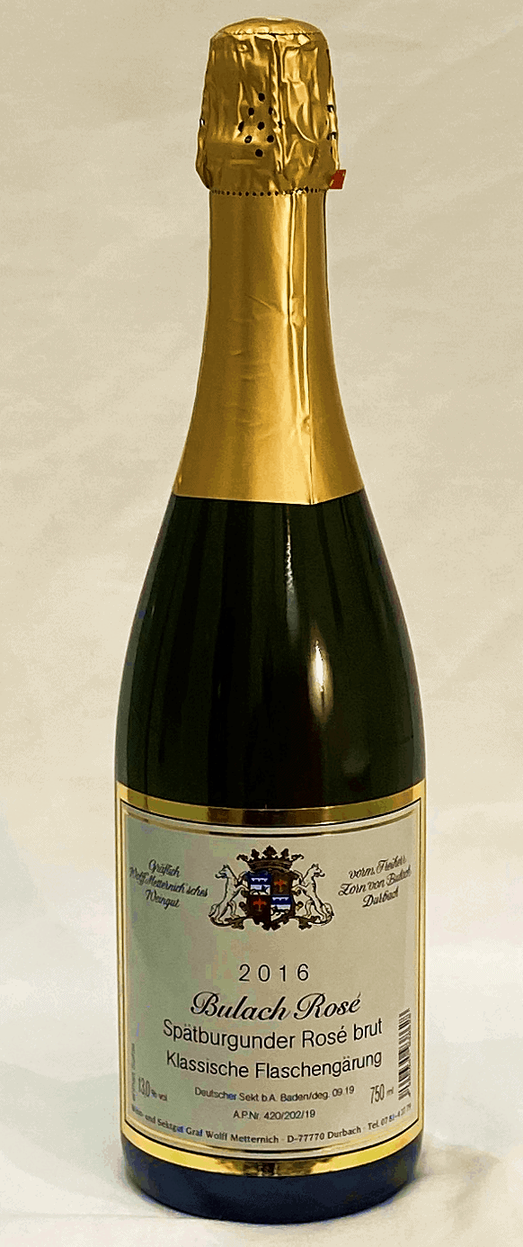 En kraftfull Winzersekt av ren Pinot noir (Spätburgunder) från den egna vingården. Doften är omisskännligt druvtypisk med liten doft av jordgubbe. Skalen från den blå burgunderdruvan ger inte bara en läcker rosa färg utan bidrar även med smakämnen. Lång lagring på jäst ger en torr, komplex och smakrik sekt där brödigheten balanseras av fruktiga syror och en lång, fin eftersmak.