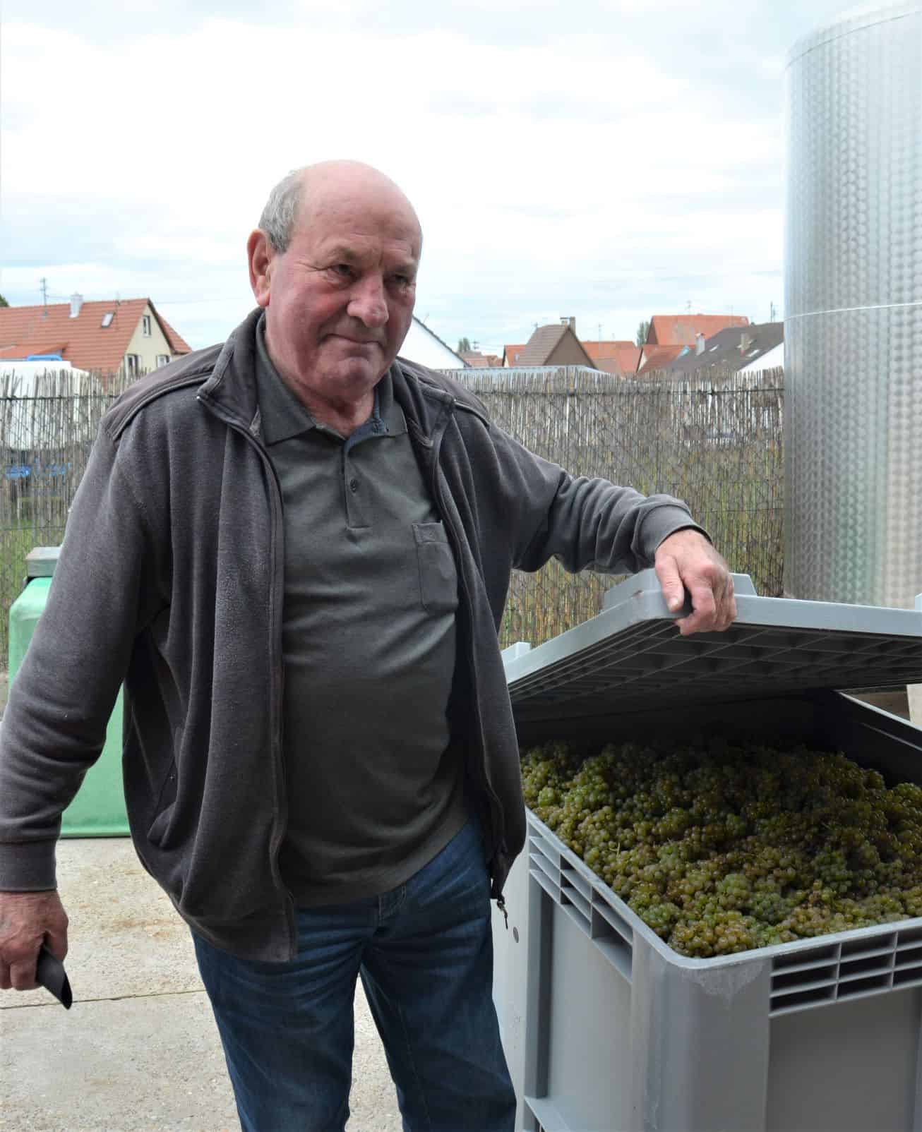 Roland Wachstetter visar hur de känsliga druvklasarna transporteras